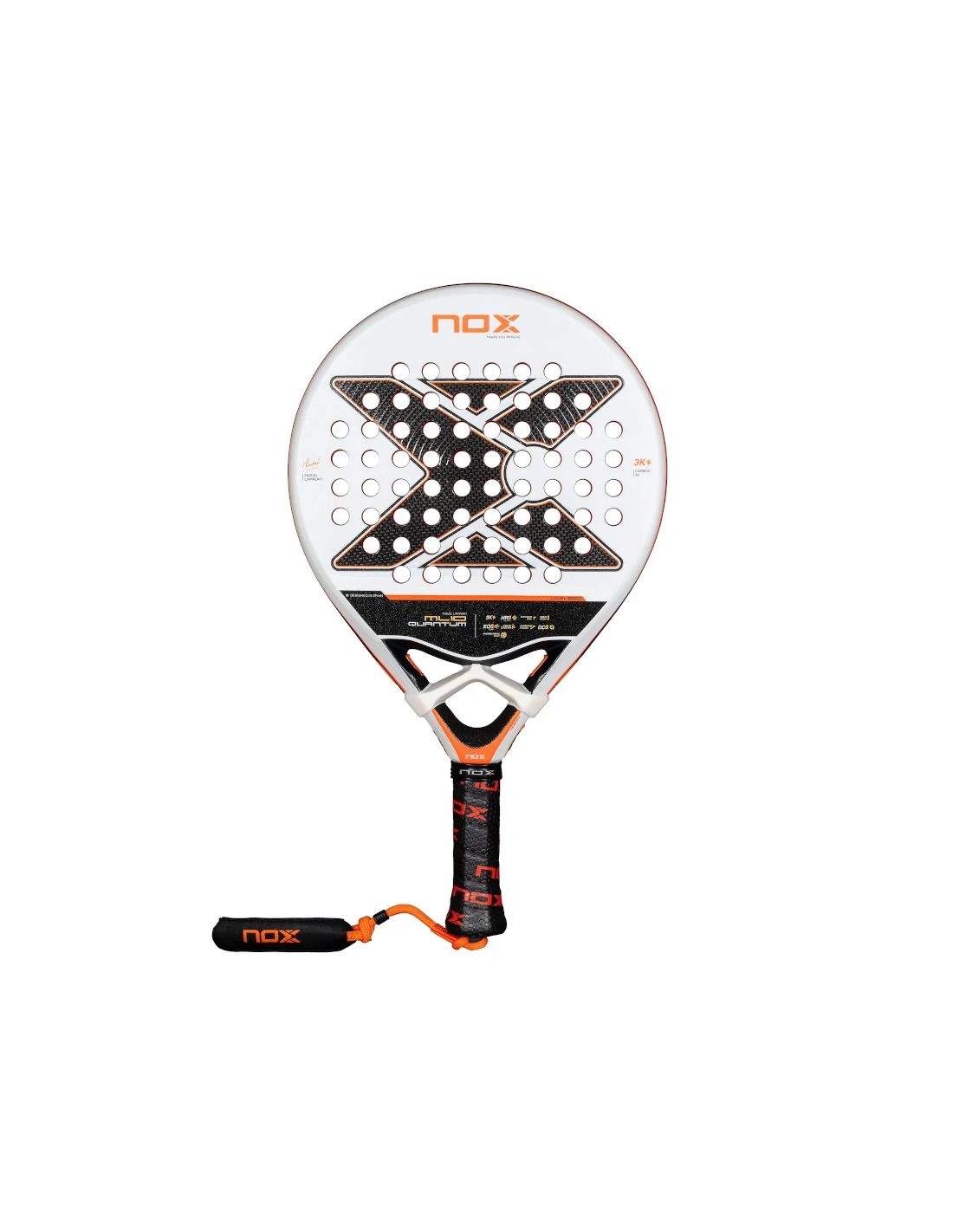 La ML10 QUANTUM 3K BY MIGUEL LAMPERTI 2025 es una pala de la Luxury Series que combina tradición e innovación. Galardonada por segundo año consecutivo en 2024 como la Mejor Pala Híbrida enfocada en el control por Testea Padel, esta pala presenta la icónica goma HR3 de NOX, ahora en color, y la nueva tecnología de pintura fotoquímica, que reacciona al color de la goma, ofreciendo una estética armoniosa y llamativa.