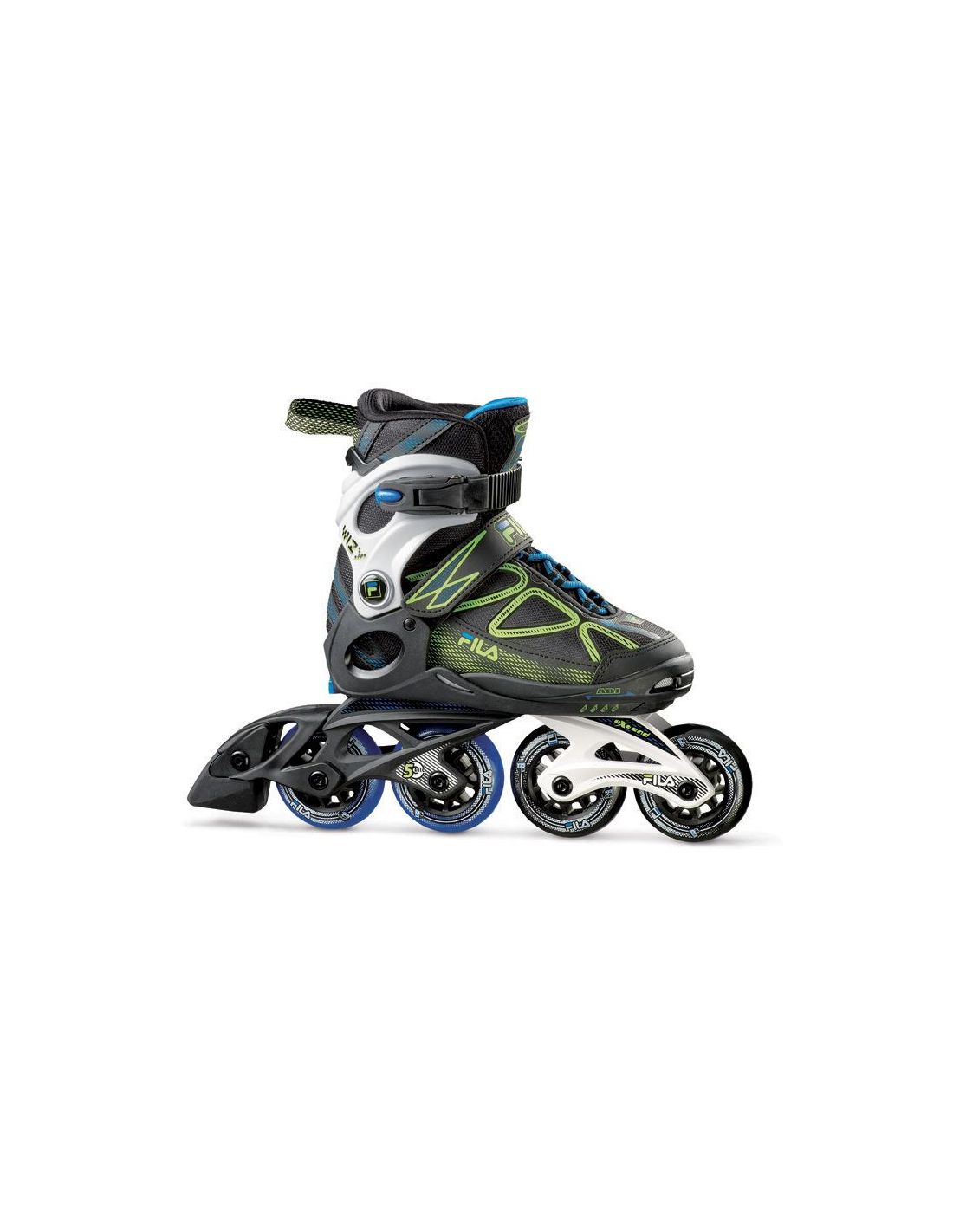 Los patines Fila Wizy son patines en línea ajustables, diseñados específicamente para niños y jóvenes que se inician en el patinaje, adaptándose al crecimiento de sus pies para un uso prolongado.