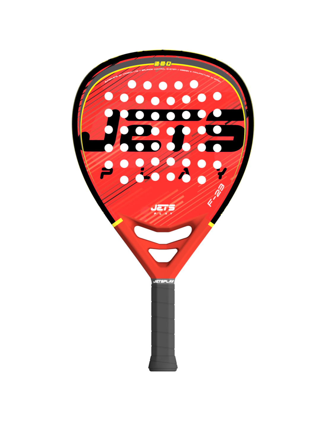 Pala de pádel de diamante Jets Play F-23. Pala de fibra de carbono perfecta para jugadores de nivel alto que busca una pala reactiva, de balance alto y que favorezca un golpeo potente.